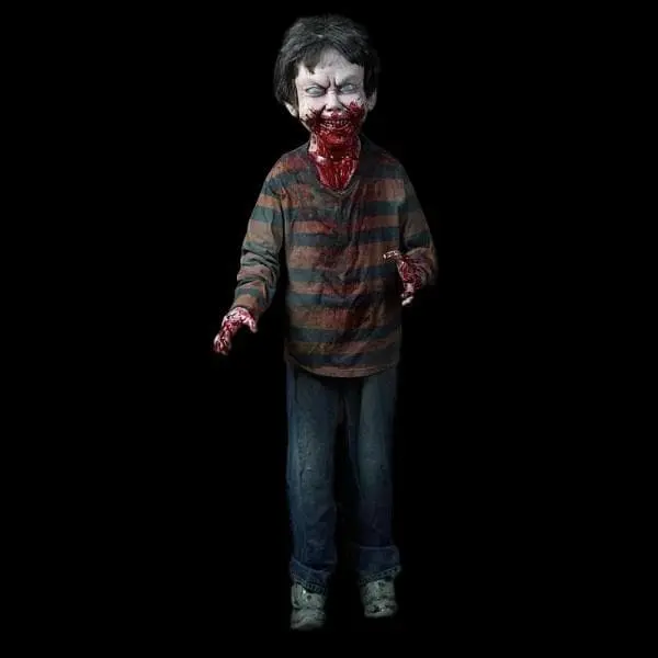 Bad Boy Prop is a creepy bloody little boy made of latex and foam, hand painted. It will give you the shivers! Wig and Clothing may vary. Includes base stand.