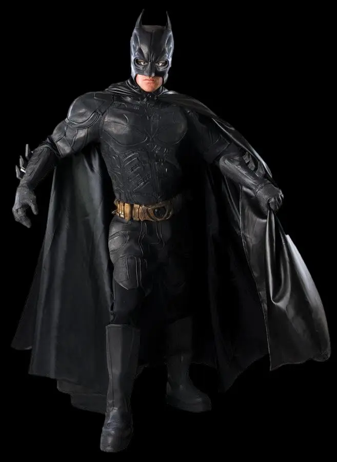 THE BEST BATMAN COSTUME EVER! Replica Comic Book Costume Licensed and Copyrighted via Marvel Comics and its Associates. Exceptional quality costume includes a molded latex headpiece, foam-filled latex chest piece, 2 biceps, trunks with attached thigh pieces, lycra jumpsuit, cape, utility belt, 2 boot tops, and 2 gauntlets. A 12 piece set! Adult standard fits 38-44.